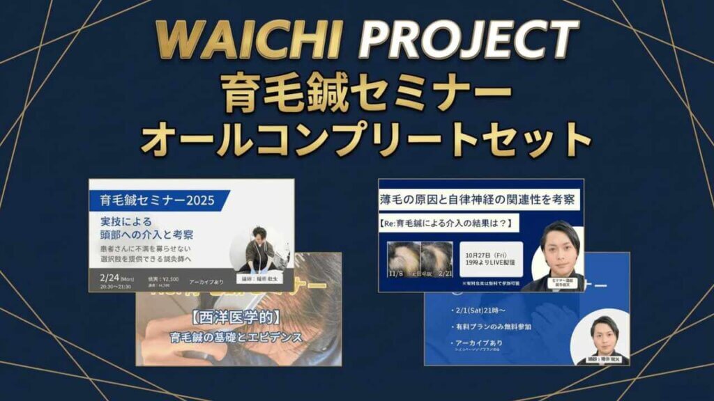 - WAICHI PROJECTで配信した育毛鍼関連のセミナーをすべて視聴可能