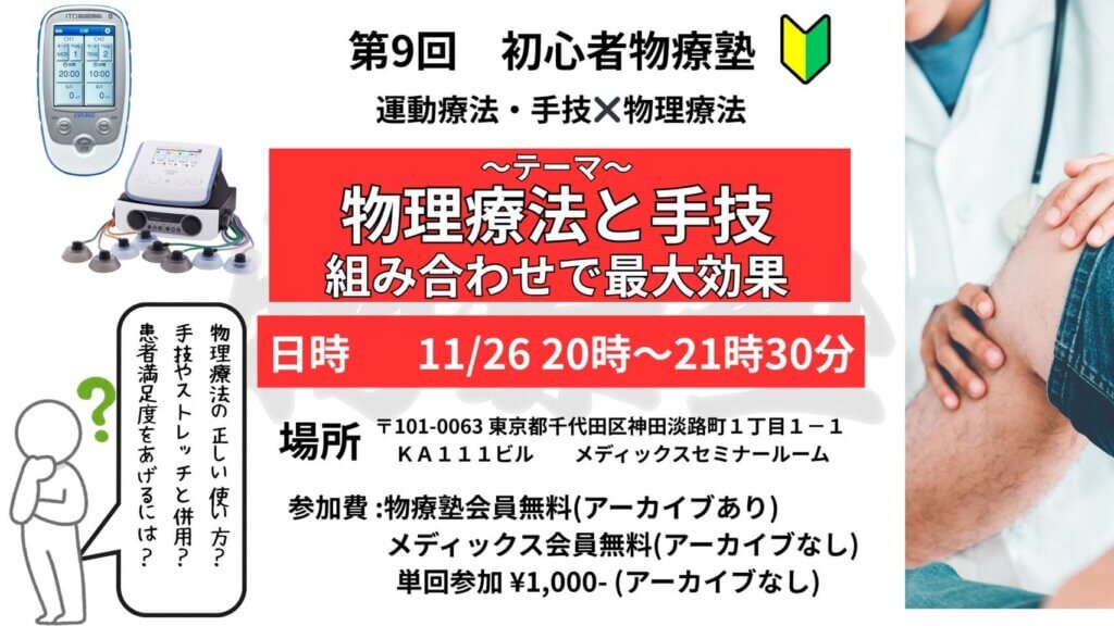 物療塾1回目:電気治療について セミナースライドは、以下のリンクよりご確認ください。